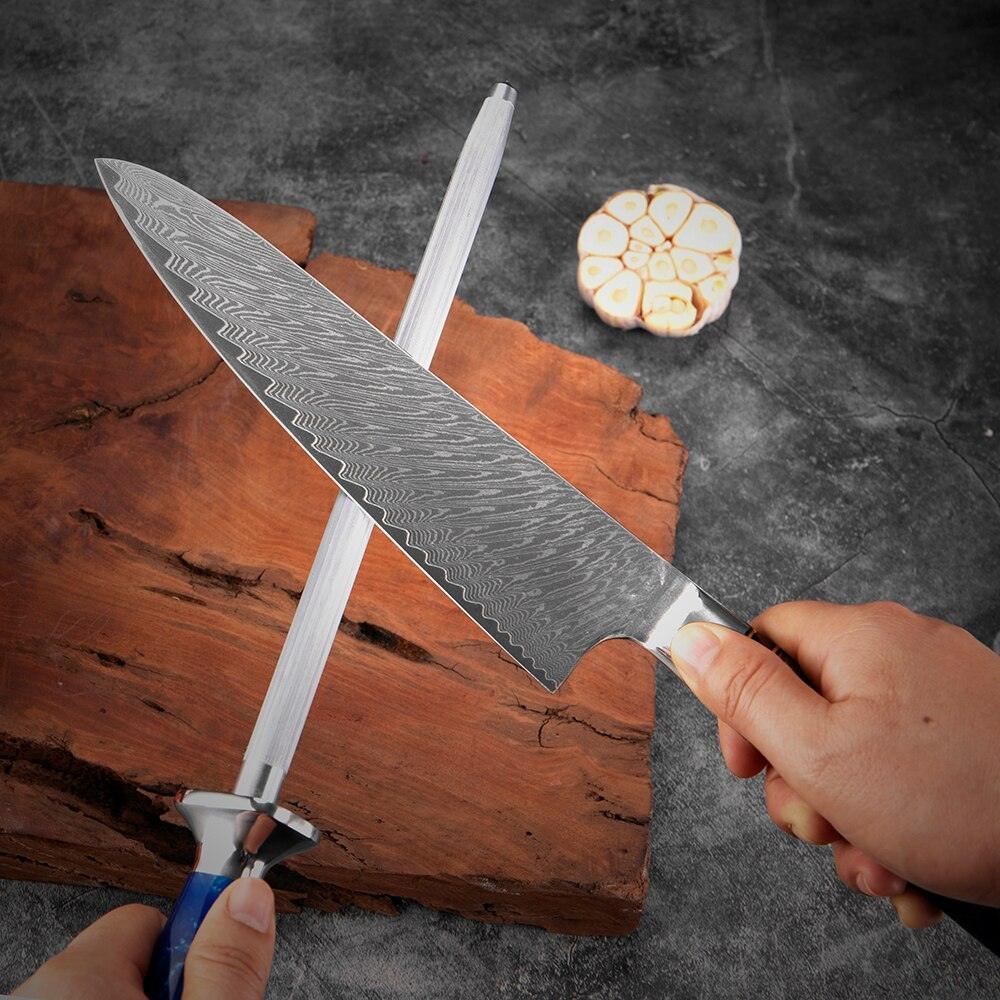 1. Clean the knife before using the honing rod.