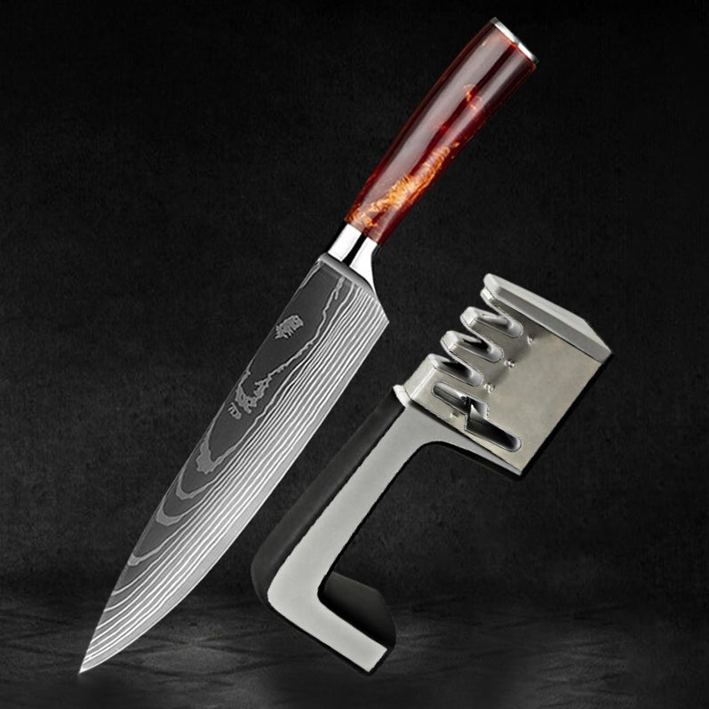 Forged Knife + 4-in-1 Professional Sharpener Set • Fire Edition