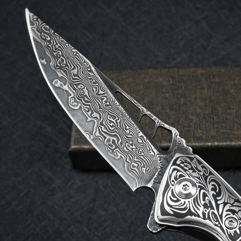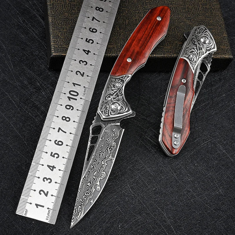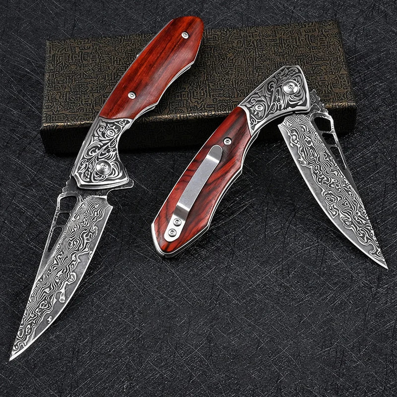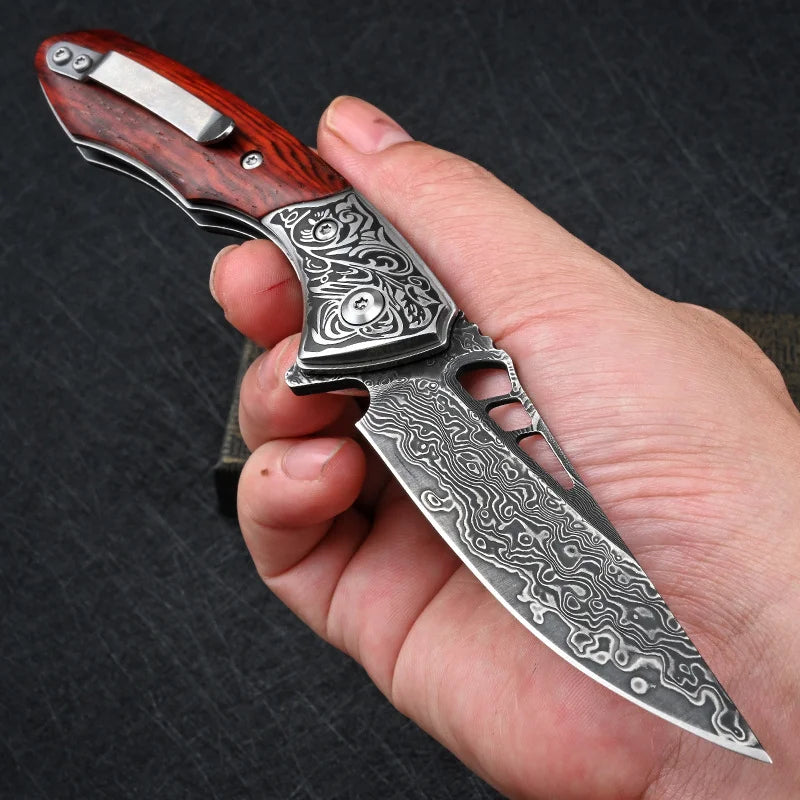 Handcrafted Damascus Steel Folding Knife • Wood BY ATENAS™