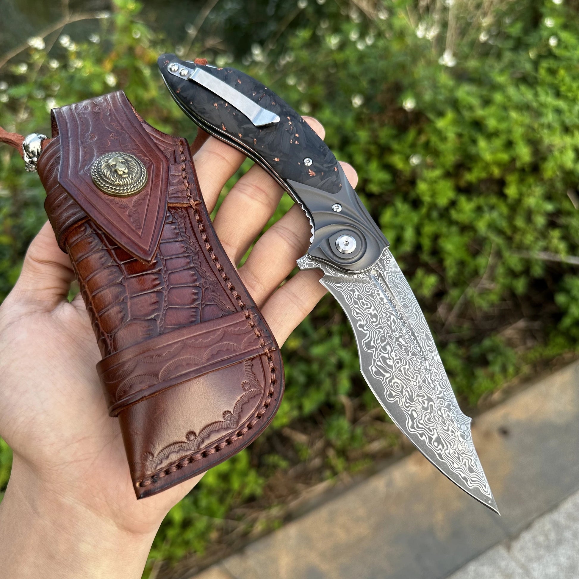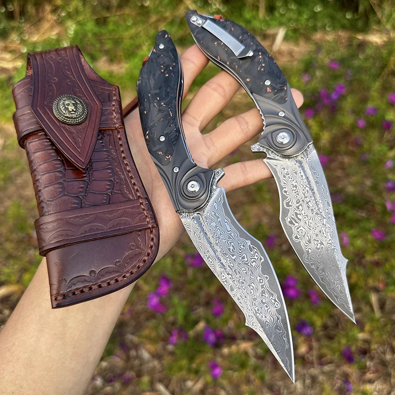Handcrafted VG10 Damascus Steel Folding Knife • Point BY ATENAS™