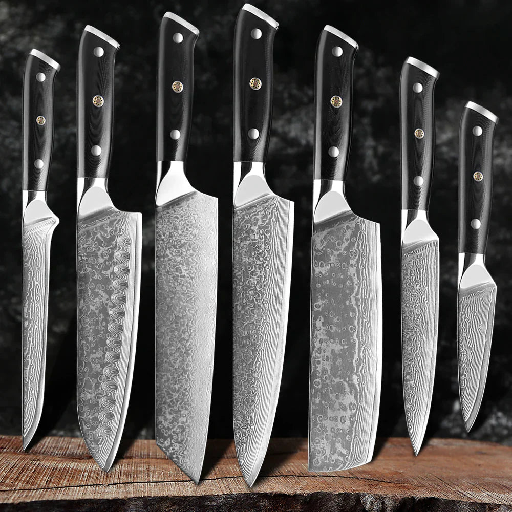 Elegance Nero Series: 7-Piece Damascus Knife Set