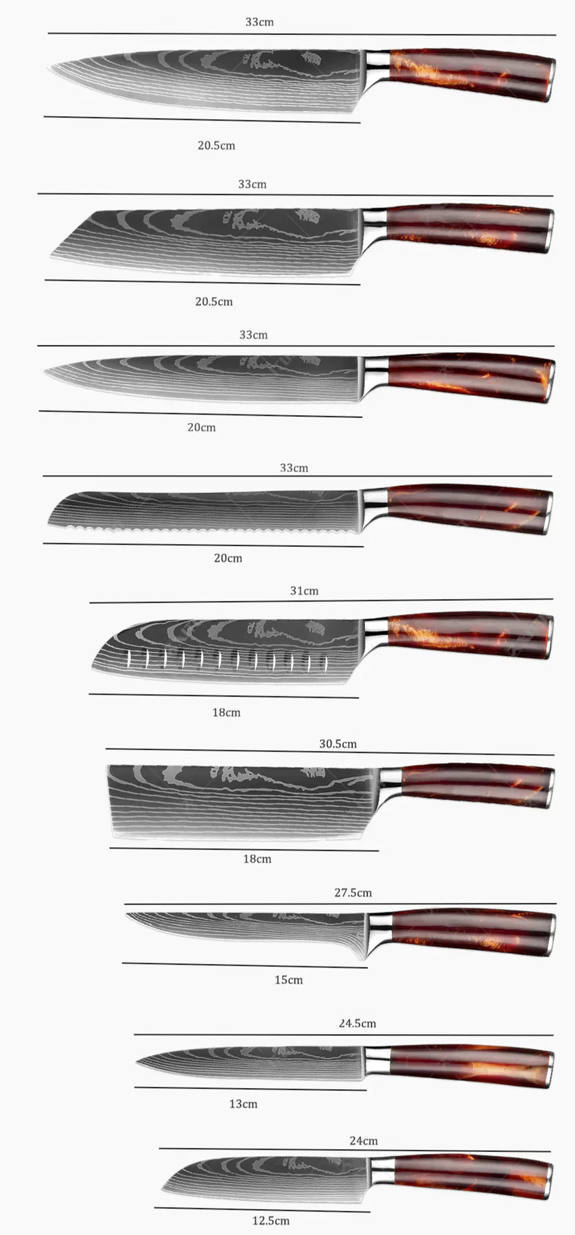 Crafted for pros and cherished by home cooks! Our versatile knife set caters to all your kitchen needs, ensuring you have the perfect tool for every task at your fingertips.